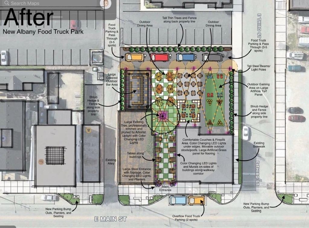 The Truckyard is a mixed-use development in the heart of downtown New Albany. We’re repurposing four existing buildings to create a vibrant space that includes a food truck park, courtyard for live entertainment, an operating bar, and upper-level apartments. All ground floors will be dedicated to retail and commercial tenants, designed to support local businesses an